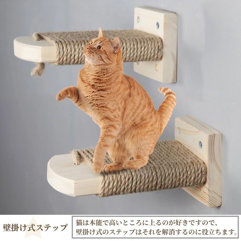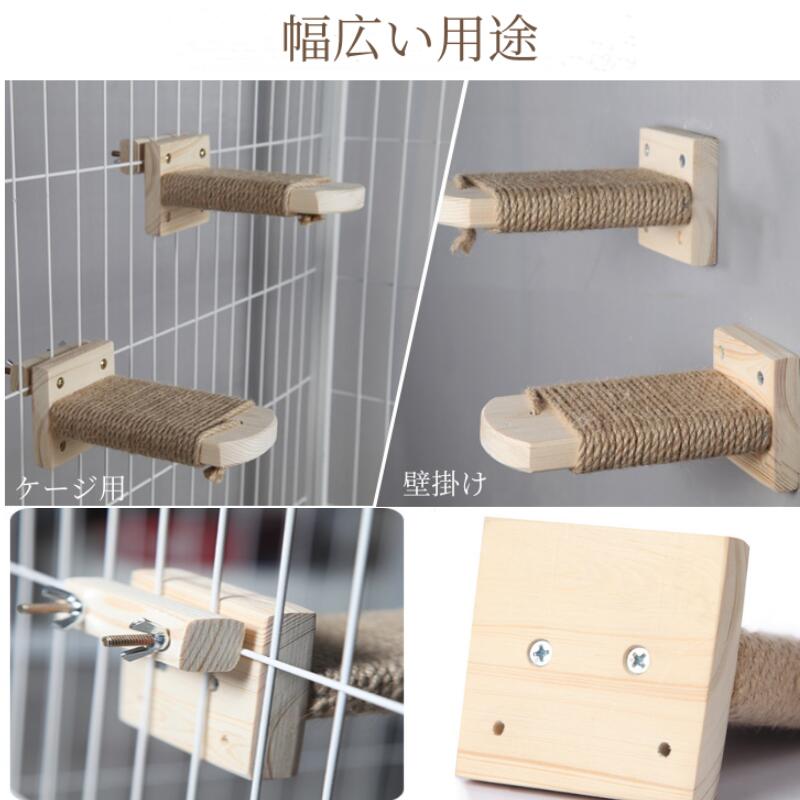 【2点セット】猫 ケージ用ステップ 階段 取付簡単 猫用ステップ 爪とぎ 木製ステップ 麻紐 滑り止め付 省スペース 2個セット