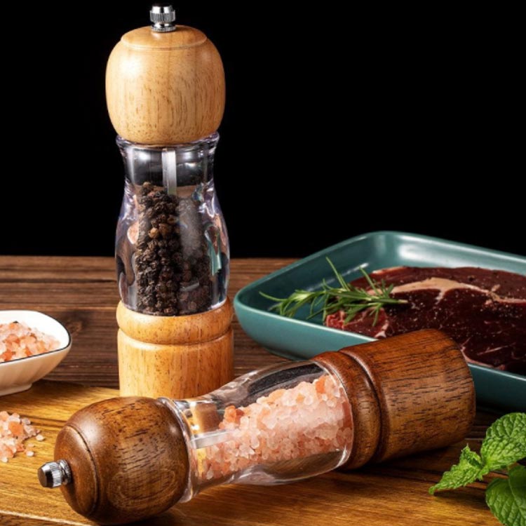 2個組 木製ペッパーミル手動 片手木製ペッパーミル手動 胡椒ミル 木製ペッパーミル 手動 ソルトミル 粗さ調節 黒胡椒 ミル 片手 簡単に調整 グラインダー 調味料挽き コショウ 胡椒 こしょう 粗びき 香辛料 岩塩 ナチュラル 茶 ブラウン