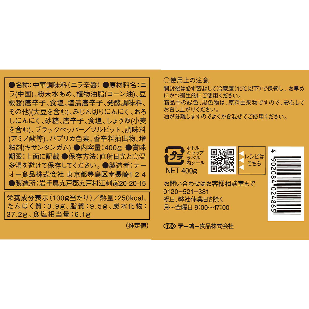 テーオー食品 ニラ辛醤 400g