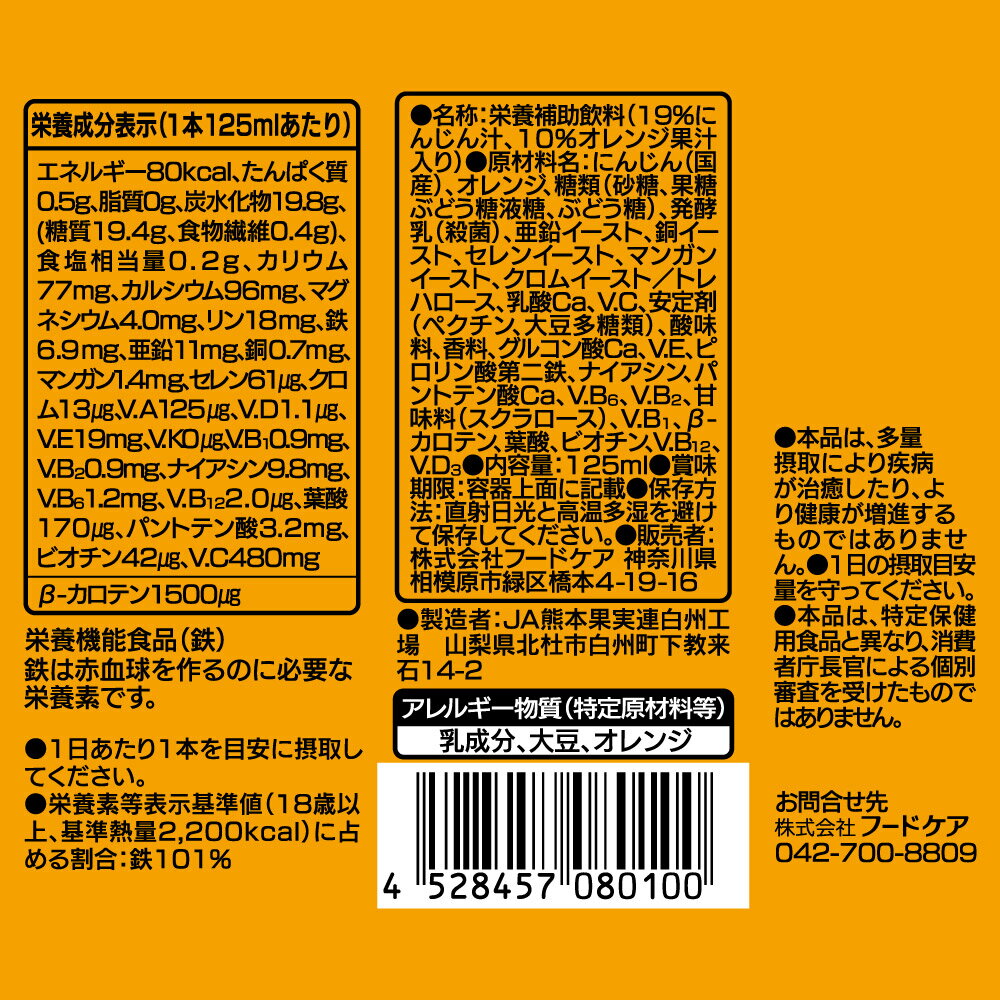 フードケア 一挙千菜ドリンク オレンジ&キャロット味 125ml×18個