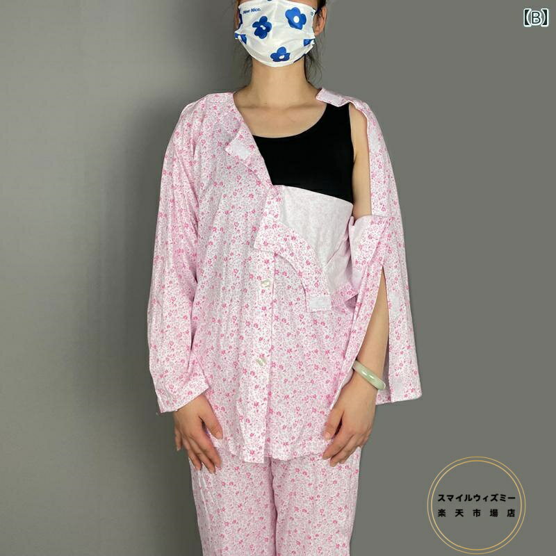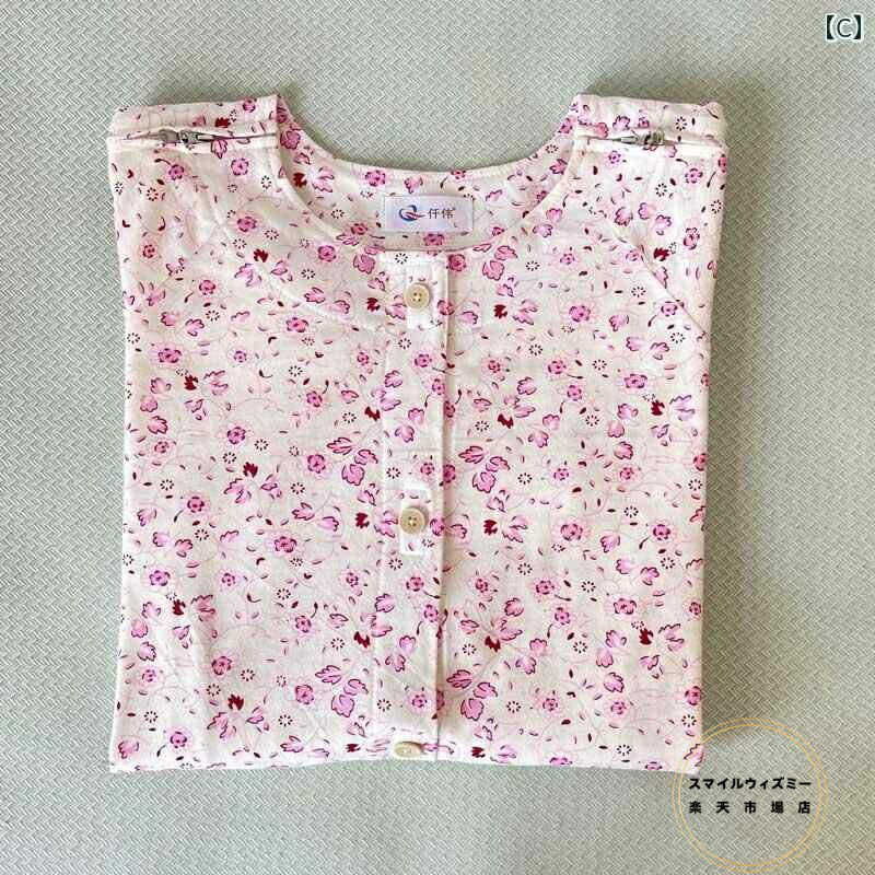 パジャマ 介護 入院 レディース 高齢者 簡単 着脱 トップス 夏 綿 長袖 腕 骨折 透析 化学 療法 病院用 ガウン ホワイト ピンク