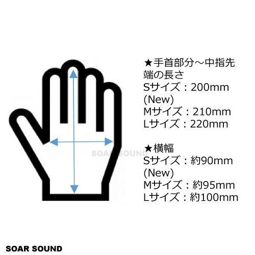スティックのグリップ感はそのままに、通気性 / 耐久性 /フィット感を更に 向上させたモデル。 スティックが当たる部分は耐久性を考え二重構造とし、一方で人差し指の部分はあえて加工を施さず、関節の屈伸性の自由度を上げるよう配慮されている。 カラーはノーマルなブラック以外にもラインナップ。 汗などでスティックが滑りやすいドラマーにおすすめ! 慣れると違和感無く叩けます!滑らない安心感は格別です! 手首〜中指先端 Sサイズ: 200mm Mサイズ: 210mm Lサイズ: 220mm 横幅 Sサイズ: 約 90mm Mサイズ: 約 95mm Lサイズ: 約100mm (カラーラインナップ) Sサイズ:ブラック Mサイズ:ブラック、レッド、ネイビー、オレンジ、ホワイト、イエロー Lサイズ:ブラック、レッド、ネイビー