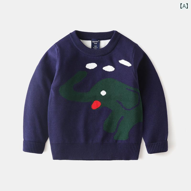 ニット キッズ 男の子 セーター 秋冬 かわいい 大象柄 あったか 子供服 トップス カットソー