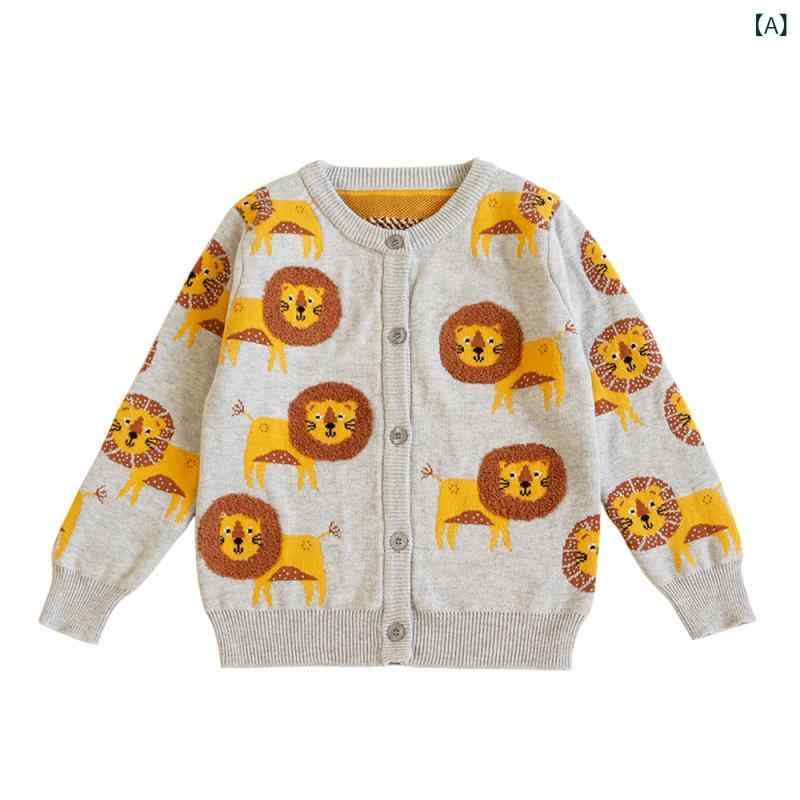 ニット カーディガン キッズ ベビー 男の子 女の子 春秋 韓国子供服 コットン 綿 ライオン かわいい