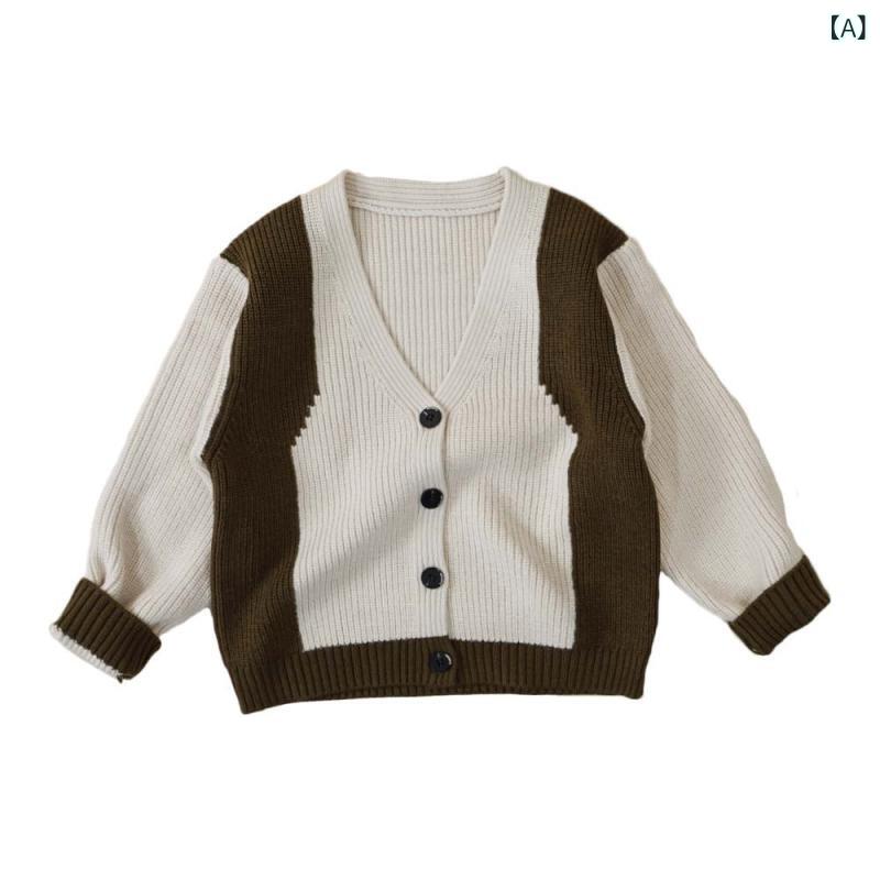 子供服 カーディガン 秋冬 ニット トップス 小中童 拼接 切り替え 配色 男の子