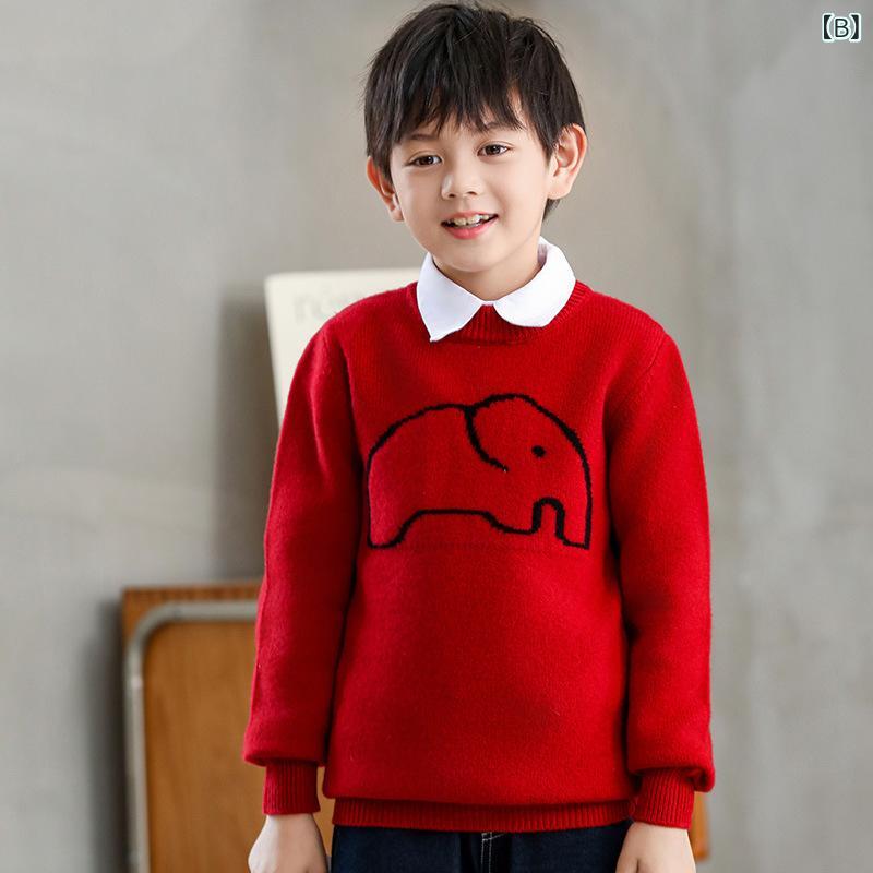 ニット 子供服 男女兼用 長袖 トップス かわいい 羊毛 セーター ベビー キッズ カットソー プルオーバー インナー 通園 通学 秋冬[ "・スタイル: 简约", "・適合年齢: 中大童(8歳以上、140cm以上)", "・適合季節: 冬季, 秋季", "・袖丈: 長袖", "・閉鎖型: プルオーバー", "・柄: カートン", "・素材: 羊毛", "・素材構成: 羊毛100%", "・ネックライン: ラウンドネック", "・フード: なし", "・カラー: 高級グレー, 中国レッド, ピュアホワイト, クラシックブラック", "・対象身長: 110cm, 120cm, 130cm, 140cm, 150cm", "・種類: 子供用セーター"]