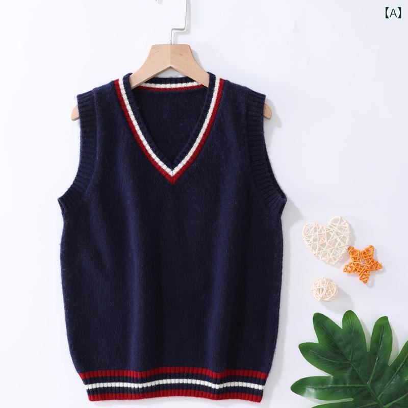 子供服 ベスト スクール風 Vネック ウール ニット セーター 男の子 女の子 英国風 おしゃれ かわいい チョッキ