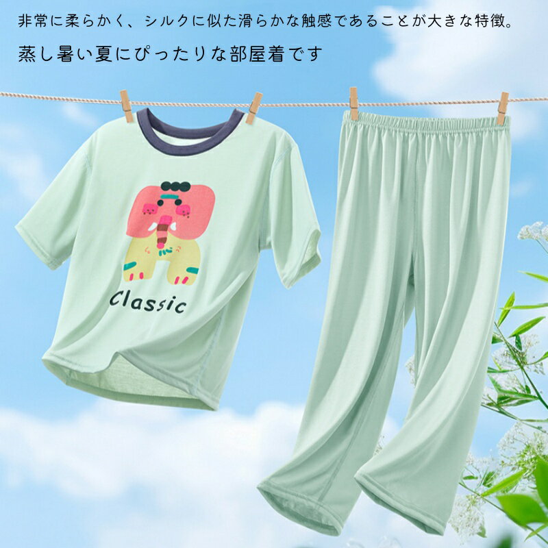 【ポイント10倍!3/4 20:00〜3/11 1:59】 パジャマ 上下セット 子供 男の子 女の子 100cm~170cm 半袖トップス 長ズボン テンセル素材 春 夏 秋 ナイトウェア 部屋着 ルームウェア 涼しい 柔らか ひんやり 通気 柔らか 快適 男児 女児 ユニセックス 男女兼用 姉妹揃い