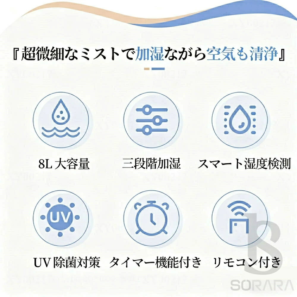商品情報商品情報商品名:8L加湿器オススメ【1】8L大容量:一回給水、最大48時間連続加湿、頻繁給水心配なし【2】超音波加湿:超微細ミストを吹出し、最大48時間連続加湿、結露・床濡れ・頻繁給水心配なし【3】40畳適用:高い位置からダブル吹出し口でミストを噴出、適用空間はより広い、天井が高い部屋でも、36畳空間適用【4】3段階加湿モード、300ml/hパワー【5】3 種類のモード:強力モード・バランスモード・睡眠モード、3 段階のモードを自由に選択可能です。強力モード:30 畳のリビングで急速に加湿を行い、30 分で室内湿度が 50% に達します。バランスモード:全天的に穏やかに保湿を続け、長時間安定した状態を維持します。睡眠モード:30dB の静音運転を実現し、呼吸灯が自動で消灯するため、快適な睡眠環境を提供します。【6】湿度設定:温度に応じて、最適な湿度を設定する。【7】室内湿度をコントロール:設定した湿度超えると、加湿を自動停止、加湿過ぎ防止、設定した湿度復帰すると、加湿を自動起動します。【8】UV除菌:99.99%除菌、 タンクの水の雑菌を瞬間殺す、安心感たっぷり【9】切タイマー:電源切れの忘れの心配なし【11】浄水:高品質な麦飯石を厳選、タンクの水をしっかり清浄、噴出のミストはよりキレイに【12】アロマ対応:癒しの香りで、ストレスを軽減、気分の落ち込みに効果的関連キーワード乾燥対策 うるおい 床置き 加湿器 大容量 8L 超音波 加湿器 卓上 UV除菌 湿度設定 次亜塩素酸水対応 リモコン付 静音 吹出し口360°回転 加湿器 アロマ スチーム 上から給水 床置き オフィス 部屋 学校 寮 トイレ リビング キッチン 浴室 脱衣所 子供部屋 教室 飲食店 冬 PSE認証済 一年間保証 おしゃれ 安全 ラニーニャ 乾燥対策 ギフト 母の日 プレゼント 母の日ギフト 恋人 友達 キッズ 子供 父 母 プレゼント ギフト 敬老の日 セール 成人の日 成人式 バレンタイン バレンタインデー ホワイトデー 卒業式 入学式 母の日 父の日 敬老の日 クリスマス Xmas 誕生日 還暦祝い お祝い ギフト プレゼント 母の日ギフト 父の日ギフト 御中元 お中元 送料無料 父の日 ギフト おすすめ 歳暮 新生活 一人暮らし 家族 メーカー希望小売価格はメーカーサイトに基づいて掲載しています メーカー希望小売価格はメーカーサイトに基づいて掲載しています メーカー希望小売価格はメーカーサイトに基づいて掲載しています加湿器 加湿機 スチーム式 超音波式 上部給水 乾燥防止 タイマー 空気清浄 40畳 大容量 8L 大型 業務用 タワー型 おしゃれ 除菌 自動湿度調節 空焚き防止 リビング/寝室/オフィス/会社用/事務所 リモコン付き 噴霧量300ML/H 人気 2年保証 24時間連続加湿 空気清浄 事務所 家庭用 空焚き防止 シルバーブラック スタイリッシュ床置き 30dB 静音 おやすみモード リモコン付き スケジュール可能 遠隔操作 30畳 節電 家庭用 省エネ 商品名:8L加湿器オススメ【1】8L大容量:一回給水、最大48時間連続加湿、頻繁給水心配なし【2】超音波加湿:超微細ミストを吹出し、最大48時間連続加湿、結露・床濡れ・頻繁給水心配なし【3】40畳適用:高い位置からダブル吹出し口でミストを噴出、適用空間はより広い、天井が高い部屋でも、36畳空間適用【4】3段階加湿モード、300ml/hパワー【5】3 種類のモード:強力モード・バランスモード・睡眠モード、3 段階のモードを自由に選択可能です。強力モード:30 畳のリビングで急速に加湿を行い、30 分で室内湿度が 50% に達します。バランスモード:全天的に穏やかに保湿を続け、長時間安定した状態を維持します。睡眠モード:30dB の静音運転を実現し、呼吸灯が自動で消灯するため、快適な睡眠環境を提供します。【6】湿度設定:温度に応じて、最適な湿度を設定する。【7】室内湿度をコントロール:設定した湿度超えると、加湿を自動停止、加湿過ぎ防止、設定した湿度復帰すると、加湿を自動起動します。【8】UV除菌:99.99%除菌、 タンクの水の雑菌を瞬間殺す、安心感たっぷり【9】切タイマー:電源切れの忘れの心配なし【11】浄水:高品質な麦飯石を厳選、タンクの水をしっかり清浄、噴出のミストはよりキレイに【12】アロマ対応:癒しの香りで、ストレスを軽減、気分の落ち込みに効果的関連キーワード乾燥対策 うるおい 床置き 加湿器 大容量 8L 超音波 加湿器 卓上 UV除菌 湿度設定 次亜塩素酸水対応 リモコン付 静音 吹出し口360°回転 加湿器 アロマ スチーム 上から給水 床置き オフィス 部屋 学校 寮 トイレ リビング キッチン 浴室 脱衣所 子供部屋 教室 飲食店 冬 PSE認証済 一年間保証 おしゃれ 安全 ラニーニャ 乾燥対策 ギフト 母の日 プレゼント 母の日ギフト 恋人 友達 キッズ 子供 父 母 プレゼント ギフト 敬老の日 セール 成人の日 成人式 バレンタイン バレンタインデー ホワイトデー 卒業式 入学式 母の日 父の日 敬老の日 クリスマス Xmas 誕生日 還暦祝い お祝い ギフト プレゼント 母の日ギフト 父の日ギフト 御中元 お中元 送料無料 父の日 ギフト おすすめ 歳暮 新生活 一人暮らし 家族 5