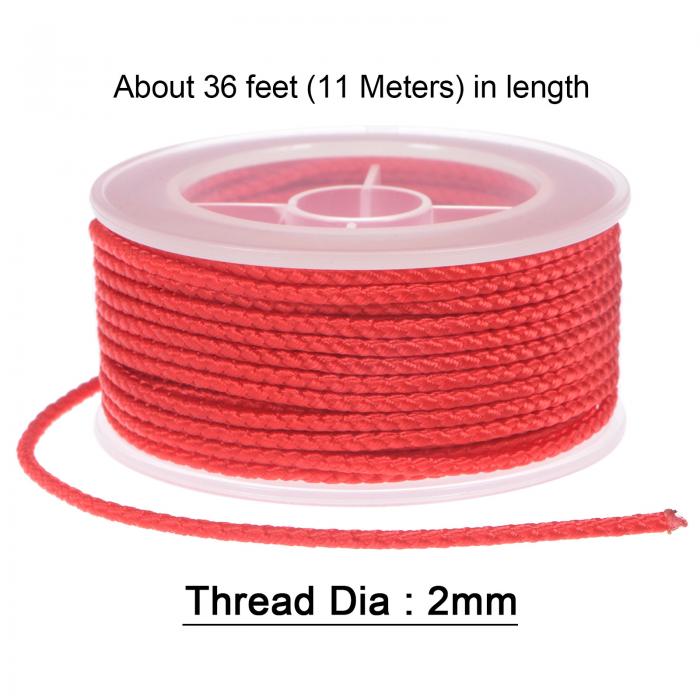 ナイロンクラフトスレッド ナイロンスレッド麻ひもビーズコード 2mm直径 超強力編組ナイロンクラフトストリング ブレスレットジュエリーメイキング DIYクラフト用 11M長さ レッド