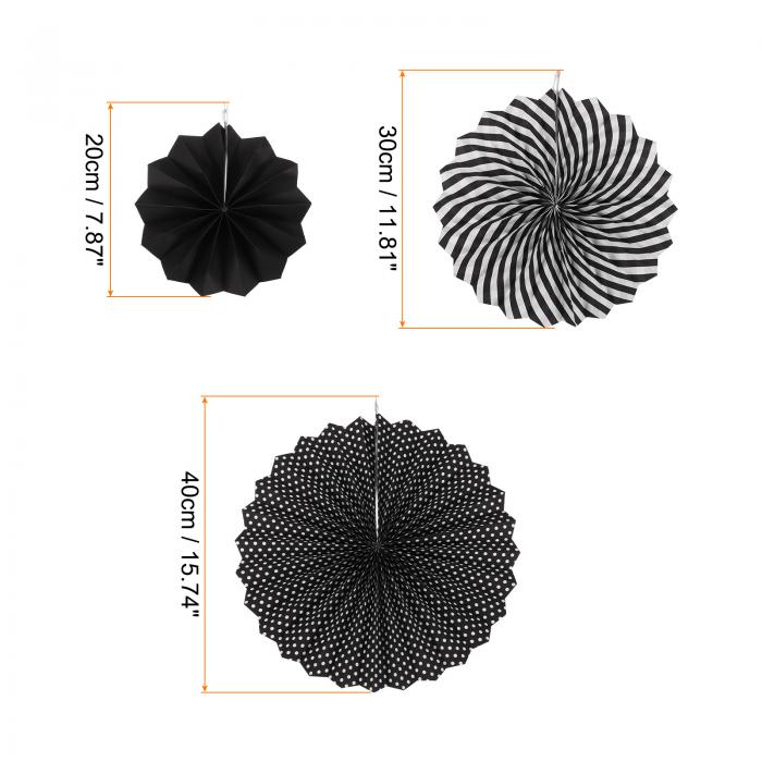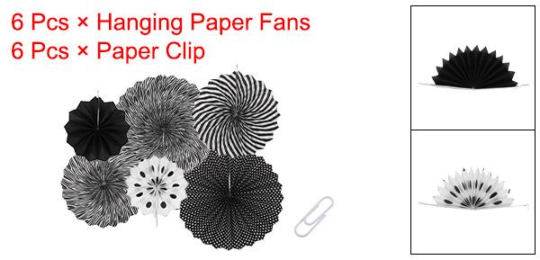 掛け紙ファンセット 吊り紙ファン 紙クリップ パーティー 円形パターン 掛けファン装飾 家庭用品 お店 壁 誕生日 結婚式 卒業式に適合 ブラック ホワイト 6個入り