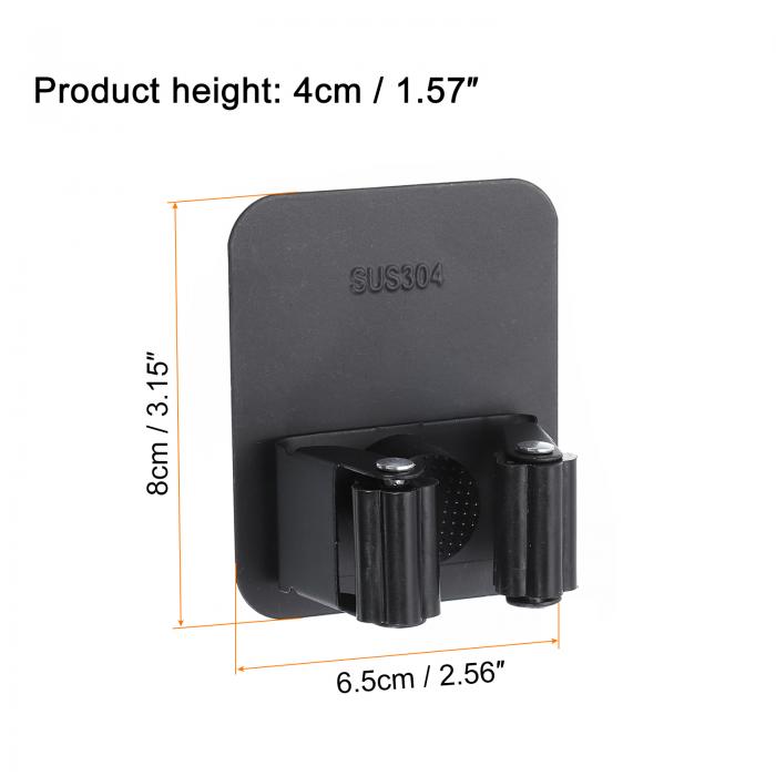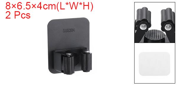 2個セット モップ掛け掃除機掛け壁掛けホルダー 304ステンレス製 掃除機ホルダー 自己接着式 黒 ネジ付き 浴室 洗濯室用