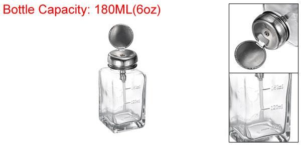 【期間限定10%OFF】ガラスポンプディスペンサーボトル 6Oz/180ML スクエア 透明液体ポンピング プレス プッシュダウン メタルフリップカバー付き メイク落とし用