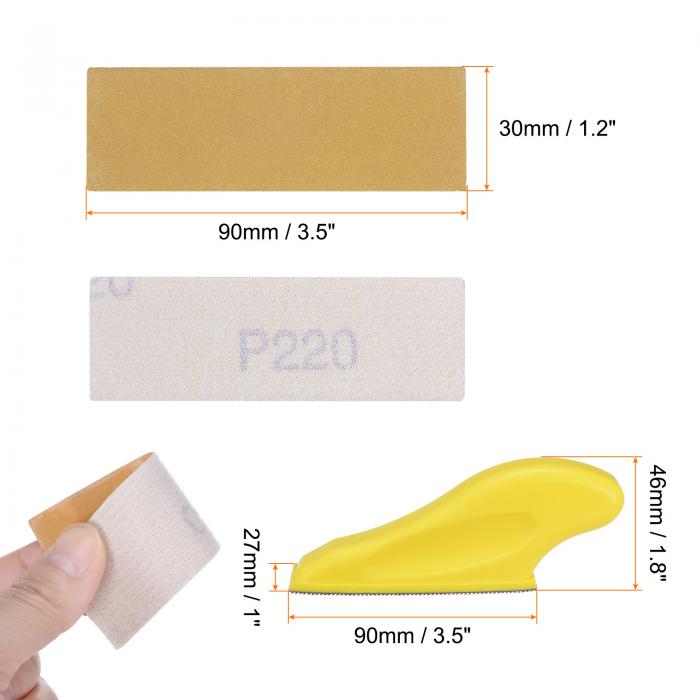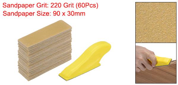 60枚のマイクロディテールサンダーペーパーキット220グリット3.5" x 1.2"ウェットドライフック&ループアルミナサンドペーパー付きミニハンドサンディングブロック 木工クラフト 金属研磨 狭い狭いスペース用