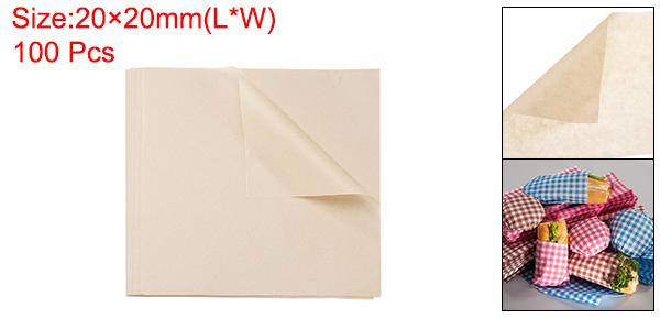 100枚の正方形ワックスペーパーシート 7.87" x 7.87" オイル吸収乾燥食品包装ペーパー サンドイッチ用ベーキングペーパーライナー ピクニックバスケット パン ハンバーガーラップ キッチン ウッドカラー