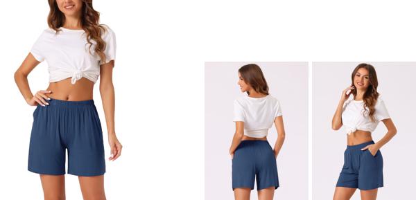 cheibear レディース モダール パジャマ ラウンジ ショーツ 柔らかく快適なパジャマ ボトムス ポケット付き 高伸縮性 ボクサー ショーツ 寝巻き ブルー XS