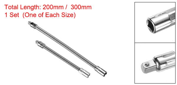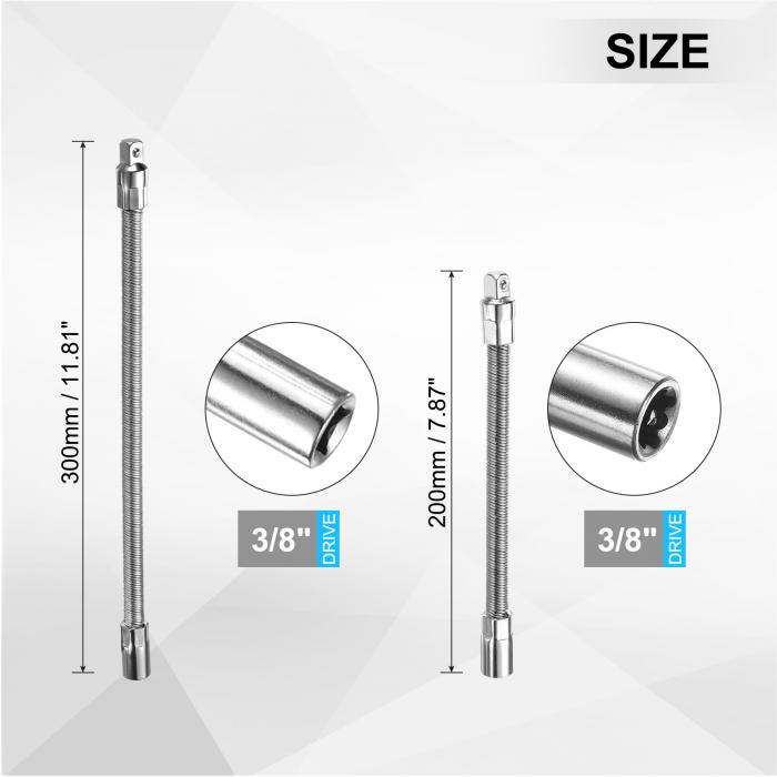 3/8" ドライブ フレキシブル エクステンション バー セット 8" 12" クロムバナジウム鋼 エクストラロング スクエア ソケット エクステンション バー ドライブ ソケット ドライバーハンドル 締め付けと緩め用 シルバー 2個