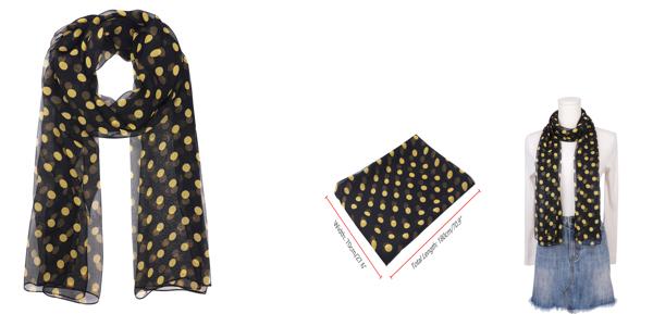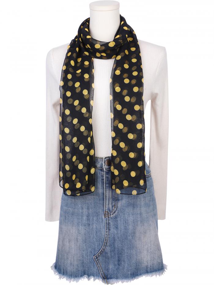 Elerevyo レディース 1950年代風 水玉模様 シフォン スカーフ レトロ 軽量 ソフト シアー ロング ヘッドラップ ショール スカーフ オールシーズン対応 黒黄色の点 180x70cm