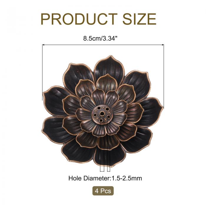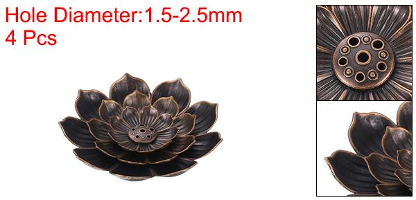 4個セット インセンスバーナーキット 真鍮製の蓮の花スティックインセンスホルダー 複数のインセンス穴 取り外し可能な灰受け皿 ヨガ 瞑想 銅製