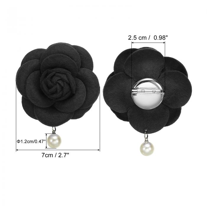 PATIKIL カメリア 花ブローチ ビンテージファブリック 花ブローチ 人工パール 優雅なフローラルピン 女性用 帽子 ドレス シャツ ネクタイ コサージュに最適 黒