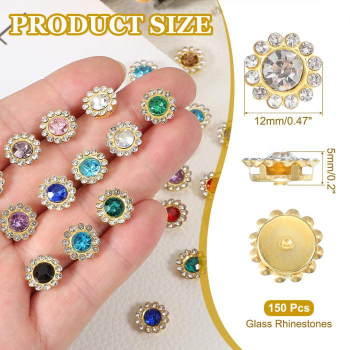 PATIKIL 12mm サンフラワーダイヤモンド付き縫い付け用ラインストーン 150個 ラインストーンシークインエンベリッシュメントクリス タルガラスメタルベースフラワークローラインストーン ホワイト
