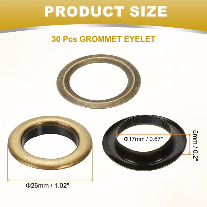 PATIKIL 17mm/11/16" メタルアイレット 30個 アイレットとグロメットキット レザーグロメットアイレットツール 布靴服カーテンベルトDIYプロジェクト用 ブロンズ