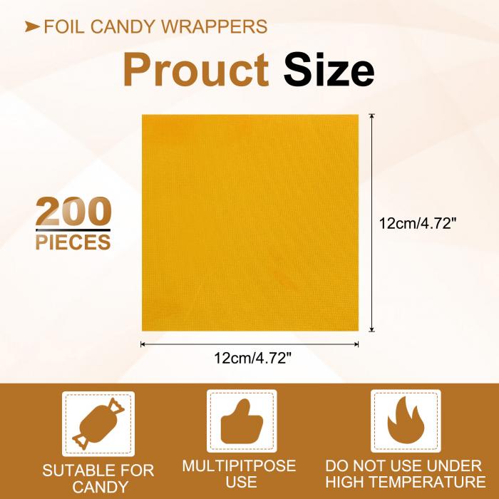 PATIKIL 5x5インチ 箔キャンディラッパー 200枚 チョコレート包装紙 自家製キャラメルDIYあめ装飾チョコレートケーキ包装用 ライト金色