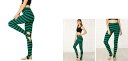 Allegra K レギンス ボーダー スパッツ トレンカ ハイウエスト ウエストゴム ヨガパンツ レディース グリーン ブラック 3XL