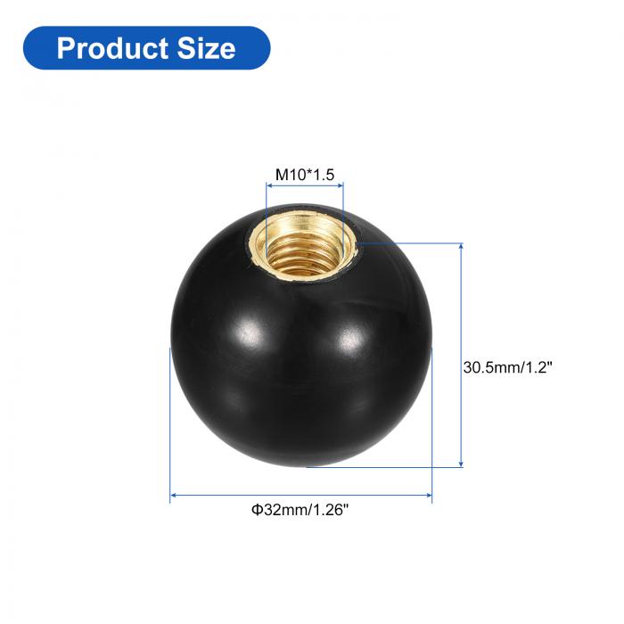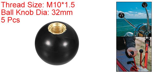 5個 ねじ付きボールノブ M10 メスねじ 熱硬化性ボールノブ 直径32mm 丸型操作ボールハンドル 銅インサート付き 機械レバーハンドル用 黒