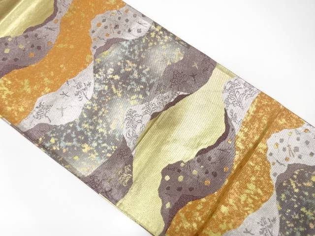 引箔 道長取りに花鳥模様織り出し袋帯(材料)【アンティーク】【中古】【着】 宗sou