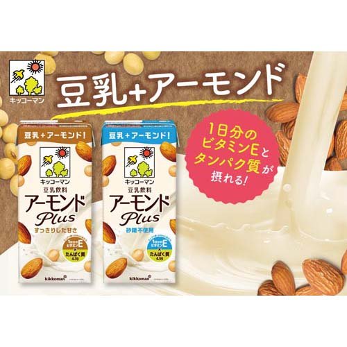 お店TOP>豆乳>キッコーマン 豆乳飲料 アーモンドPlus (1L*6本入)【キッコーマン 豆乳飲料 アーモンドPlusの商品詳細】●アーモンドミルクの特徴であるビタミンE含有しております。●アーモンドだけでなく大豆も摂れる、植物性ミルクです。【品名・名称】豆乳飲料【キッコーマン 豆乳飲料 アーモンドPlusの原材料】大豆(カナダ又はアメリカ)(分別生産流通管理済み)、砂糖、アーモンドペースト、米油、天日塩/糊料(セルロース、増粘多糖類)、乳化剤、ビタミンE、香料【栄養成分】(200mlあたり)熱量:101kcal、たんぱく質:4.3g、脂質:4.7g、飽和脂肪酸:0.72g、コレステロール:0mg、炭水化物:10.5g(糖質:9.7g、食物繊維:0.8g)、食塩相当量:0.38g、カリウム:199mg、ビタミンE:12.3mg、イソフラボン:25mg【アレルギー物質】アーモンド、大豆【保存方法】直射日光を避け、涼しい場所に保存してください。【原産国】日本【ブランド】キッコーマン【発売元、製造元、輸入元又は販売元】キッコーマンソイフーズリニューアルに伴い、パッケージ・内容等予告なく変更する場合がございます。予めご了承ください。キッコーマンソイフーズ105-0003 東京都港区西新橋2-1-10120-1212-88広告文責:楽天グループ株式会社電話:050-5306-1825[豆乳/ブランド:キッコーマン/]