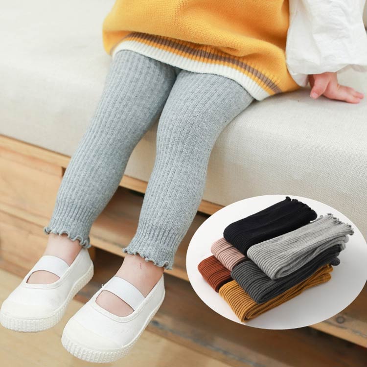 送料無料 リブレギンス キッズ レギパン スパンツ レギンス パンツ 子供服 女の子 ボトムス メロウフリル ウエストゴム 九分丈 無地 かわいい 春秋 春 秋