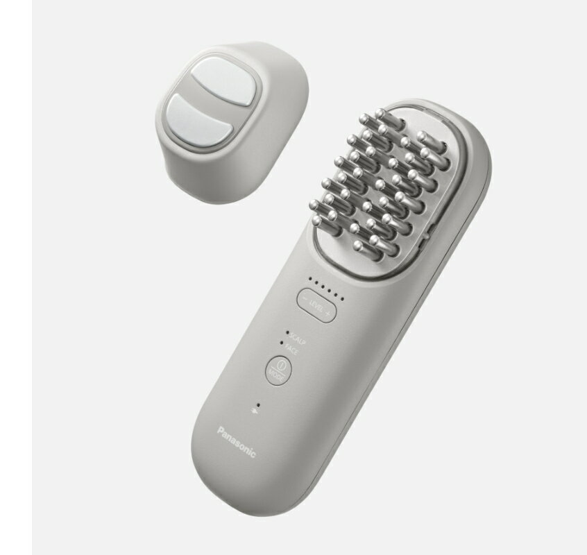 頭からはじめるリフトケア 頭筋と表情筋に2種類のEMS。 頭筋・表情筋を科学した独自開発の2種類のEMSを搭載。 頭筋を効率的にとらえる「アクティブフロートブラシ」。 イオンの力で化粧品の美容成分が肌の角層まで浸透。 【スペック詳細】 電源方式:充電式 充電時間:約2時間(室温15〜35℃) 連続使用時間:フル充電で約30回使用可能 電池種類:リチウムイオン電池 消費電力:約5W(充電時) 本体寸法:高さ15.5×幅5.1×奥行5.3cm 質量:約200g(USB電源アダプター、USBケーブル、アタッチメント除く) コードの長さ:約1m(USBケーブル) 電源・電圧:AC100〜240V(自動電圧切替付) 50-60Hz 生産国:本体 日本/USB電源アダプター 中国 パッケージ寸法:高さ17.7×幅10.9×奥行5.5cm 【安全に関するご注意】 ● 次のような医用電気機器や家庭用電気治療器の近くでは使用しない。 ・ペースメーカーなどの体内植込み型医用電気機器 ・人工心肺などの生命維持用医用電気機器 ・心電計や点滴器などの装着型の医用電気機器 (医用電気機器や家庭用電気治療器の誤動作による事故や体調不良の原因) ●下記の人は使用しない ・心臓疾患の人・出血性疾患・血友病疾患などの血液異常の人 ? 幼児や成長期の子供、および自分で意思表示のできない人 (事故や体調不良の原因) ・皮膚アレルギーの人 ・皮膚病およびアトピー性皮膚炎の人 (頭皮や肌トラブルの原因) ・妊娠中および産後1か月の人 (ホルモンバランスが不安定なため頭皮や肌トラブルの原因) ●心臓の近くには使用しない (事故や体調不良の原因) ●次の部位には使用しない ・神経障害・皮膚知覚障害のある部位 ・交通事故などにより、後遺症がある部位 (事故や体調不良の原因) ●下記の場合には使用しない ・体調がすぐれない場合 ・ステロイド系ホルモン剤や免疫抑制薬・眠気を誘う薬を服用した場合 ・疲労の激しい場合 ・皮膚炎・過度の日焼けなど、皮膚に異常のある場合 (頭皮や肌、身体のトラブルの原因) ●下記の部位には使用しない ・頭皮や肌に傷や湿しん・はれものなどのある部位 ・当日の脱毛処理をした部位 ・外科手術(形成・美容など)を受けた部位 ・のど・粘膜・骨ばった部位 (頭皮や肌、身体のトラブルの原因) ・まぶた (目のトラブルの原因) ●次のような人は、医師に相談のうえ、使用する ・今までに重い病気をした人 ・悪性腫瘍のある人 ・骨粗しょう症の人、 ・急性疾患の人 ・糖尿病など高度な末梢循環障害による知覚障害のある人 ・感染症疾患のある人 ・有熱性疾患のある人 (事故や体調不良の原因) ・敏感肌の人 (頭皮や肌トラブルの原因) ●頭皮や肌、身体に痛み・異常を感じたらすぐに使用を中止する (事故や頭皮・肌・身体のトラブルの原因)パナソニック バイタリフト ブラシ EH-SP60頭からはじめるリフトケア頭筋と表情筋に2種類のEMS。頭筋・表情筋を科学した独自開発の2種類のEMSを搭載。頭筋を効率的にとらえる「アクティブフロートブラシ」。イオンの力で化粧品の美容成分が肌の角層まで浸透。