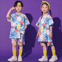 ブルー キッズ ダンス衣装 セットアップ おしゃれ 女の子 男の子 かっこいい ゆったり スカート 短パン 花柄セット 柄シャツ へそ出し シンプル ファション ヒップホップ ジャズダンス ロッキング 韓国 k-pop jazz 演出服 練習着 団体服 発表会 個性派 運動会 派手 海遊び 夏