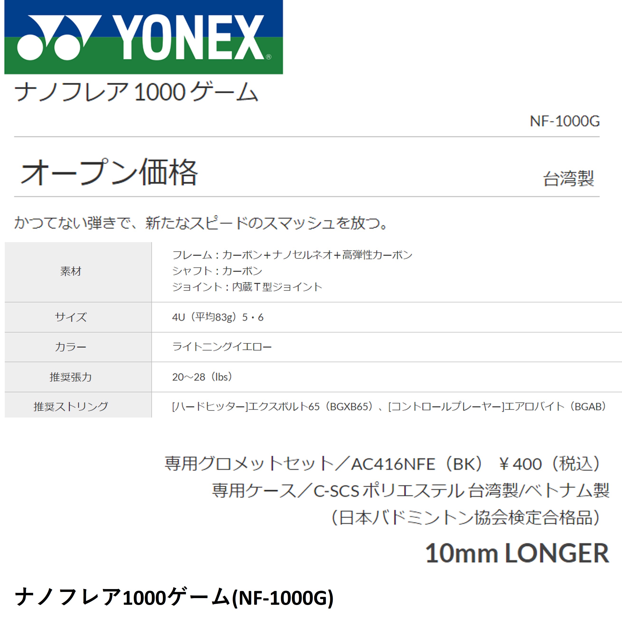 【最短出荷】【ガット代・張り代無料】ヨネックス YONEX バドミントンラケット ナノフレア1000ゲーム NF-1000G バドミントン