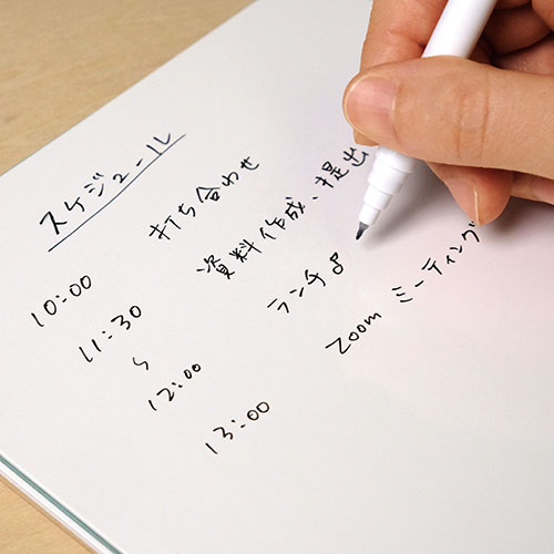 スマホと一緒に持ちやすく雑貨テイストな正方形(Square)タイプ。(曲細マーカー付き)スマホと一緒に持ちやすく雑貨テイストな正方形(Square)タイプ。オンライン会議や自宅学習、買い物リストなどに最適な、エコな商品です。小さな見た目ながら、イラストや文字を書くのには充分な筆記スペースを保っています。持っているだけで気分が和む4色展開で、リモートワークでも大活躍!マーカーは、ご要望の多かった極細タイプに変更し、細かい文字が書きやすくなりました。■サイズ : 165mm×165mm■重さ : 約155グラム■仕様 : ホワイトボード3枚(6ページ)+透明シート4枚入り■付属品 : 極細ホワイトボードマーカー(黒)■素材 : 紙、PET■保証期間 : 1年間■生産国 : 日本豆乳(入浴用化粧品)6個おまけつき(商品とは関係ありません)別送