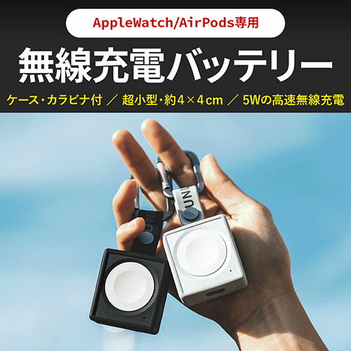Apple Watch/AirPods専用の無線充電バッテリー。超小型だけど5Wの高速充電!Apple Watch/AirPods専用の超小型・無線充電バッテリー。アルミを削り出して加工した、シンプルで硬質なデザイン。4.25×3.85cmと超小型ボディで軽量ですが、5Wの高速無線充電が可能!キュートなボディに充電バッテリーを内蔵しています。専用シリコンケース付き、カラビナ2個付き。いつもぶら下げて持ち歩ける無線充電バッテリー。素材 : アルミ、ABSサイズ : 3.85×4.25×1.58cm重量 : 46g入力電力 : 10W以上定格出力 : 最大5Wバッテリー : リチウム1000mAh内蔵バッテリー充電時間 : Type-C充電 約70分※充電用ケーブルは付属しません。保証期間 : 6か月生産国 : 中国入浴剤fおまけつき(商品とは関係ありません)別送