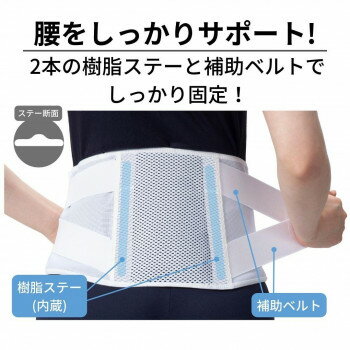 軽量メッシュで快適、補助ベルトが固定力UP。軽くてソフトな着け心地通気性のあるメッシュタイプ2本のステーがしっかりサポート。【装着方法】(1)本体の両端を持ち、腸骨を覆うように体の正面で留めます。(2)補助ベルトを引っ張り、下腹部を引き上げるように補助ベルトを留めます。(3)ゆるみやズレがないか確かめてください。違和感がある場合は、再度はじめから装着し直してください。サイズL(腰廻り:90〜105cm)個装サイズ:2×19.5×24cm重量個装重量:119g素材・材質ナイロン、ポリエステル、ポリウレタン、樹脂(ステー)生産国フィリピン(D)おまけつき(商品とは関係ありません)別送fk094igrjs
