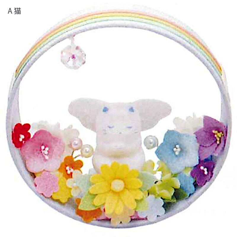 コンパクト ペット飾り [ちりめん天使と虹の花飾り] [猫] [犬] ちりめん製 [犬 猫 うさぎ 供養 手作り 飾り]