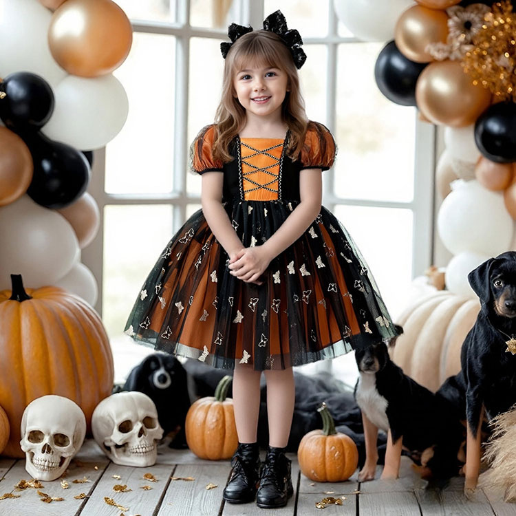 ハロウィン コスプレ 衣装 子供 ワンピース 魔女 巫女 コスプレ 悪魔 ドレス コスチューム 女の子 イベント halloween 帽子付き 仮装 こども チュール ワンピース オレンジ 110 120 130 140 cm キッズ ハロウィン 仮装 幼稚園 保育園 小学生