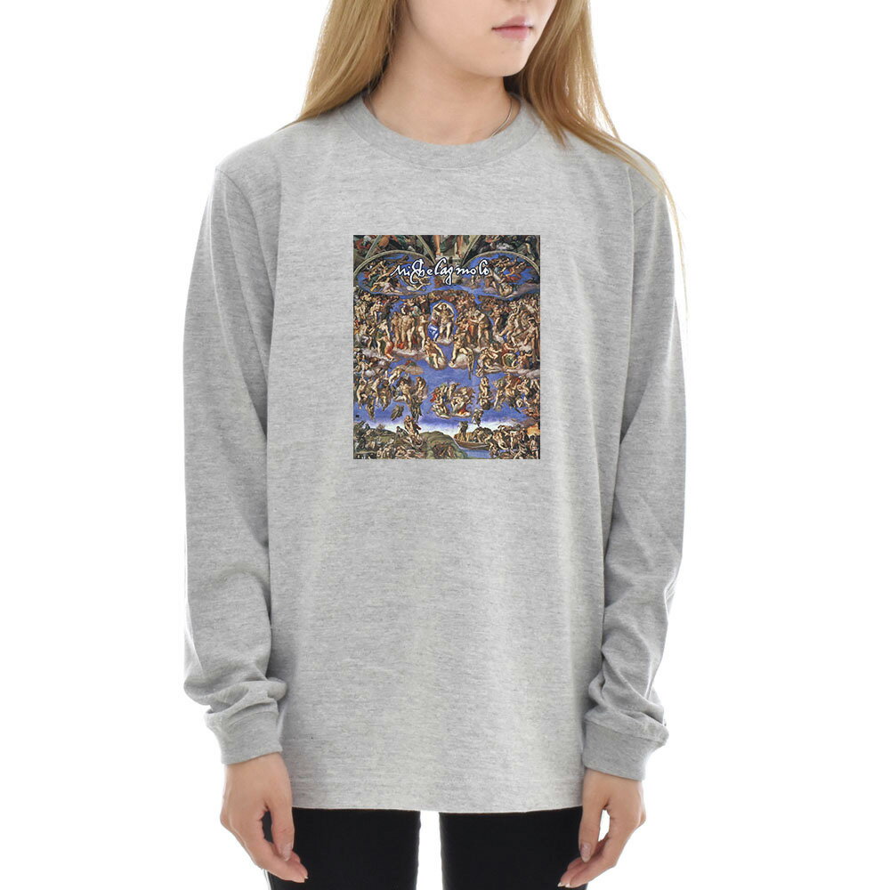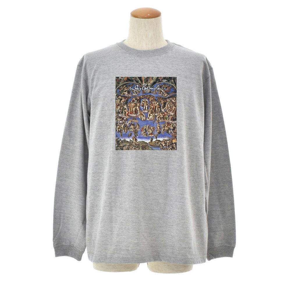 【長袖 アートTシャツ】ミケランジェロ・ブオナローティ Tシャツ 最後の審判 ライフ イズ アート 長袖 ロングスリーブ ロンT メンズ レディース 大きいサイズ ビックサイズ おしゃれ 絵画 名画 ティーシャツ S M L XL XXL グレー 灰 ブランド