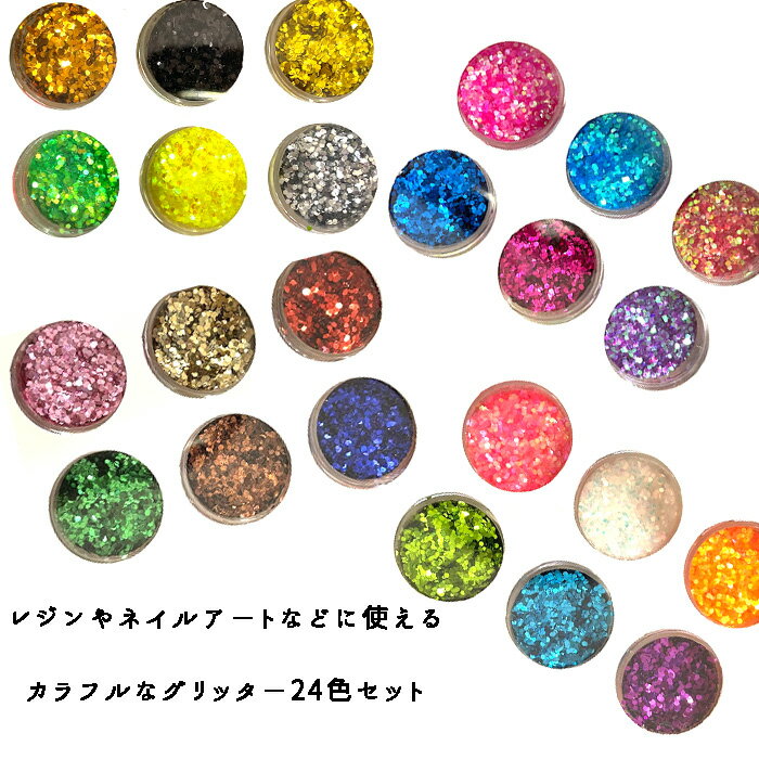 レジンやネイルアートなどに使えるカラフルなグリッター24色セット♪ オリジナルボールペンやガラスドームにもどうぞ☆ 数量:24色1セット ◆大切なご案内~必ずお読みください。◆ ・サイズに誤差がでる可能性がございます。 ・海外品のため、多少の傷、サビ、変色、欠け、バリなどが見られるものが含まれる場合がございます。 ・箱のへこみ、破れ、つぶれ、ケースのヒビなどがある場合がございます。 ・お色に多少の個体差が生じる場合がございます。 ・入荷ロットにより、同一カラーの商品であっても形に若干の誤差が生じる場合がございます。 ・掲載写真はできる限り実際のお品の色に近づけるよう心がけておりますが、パソコンやモニタによって、若干色合いが異なることがございます。