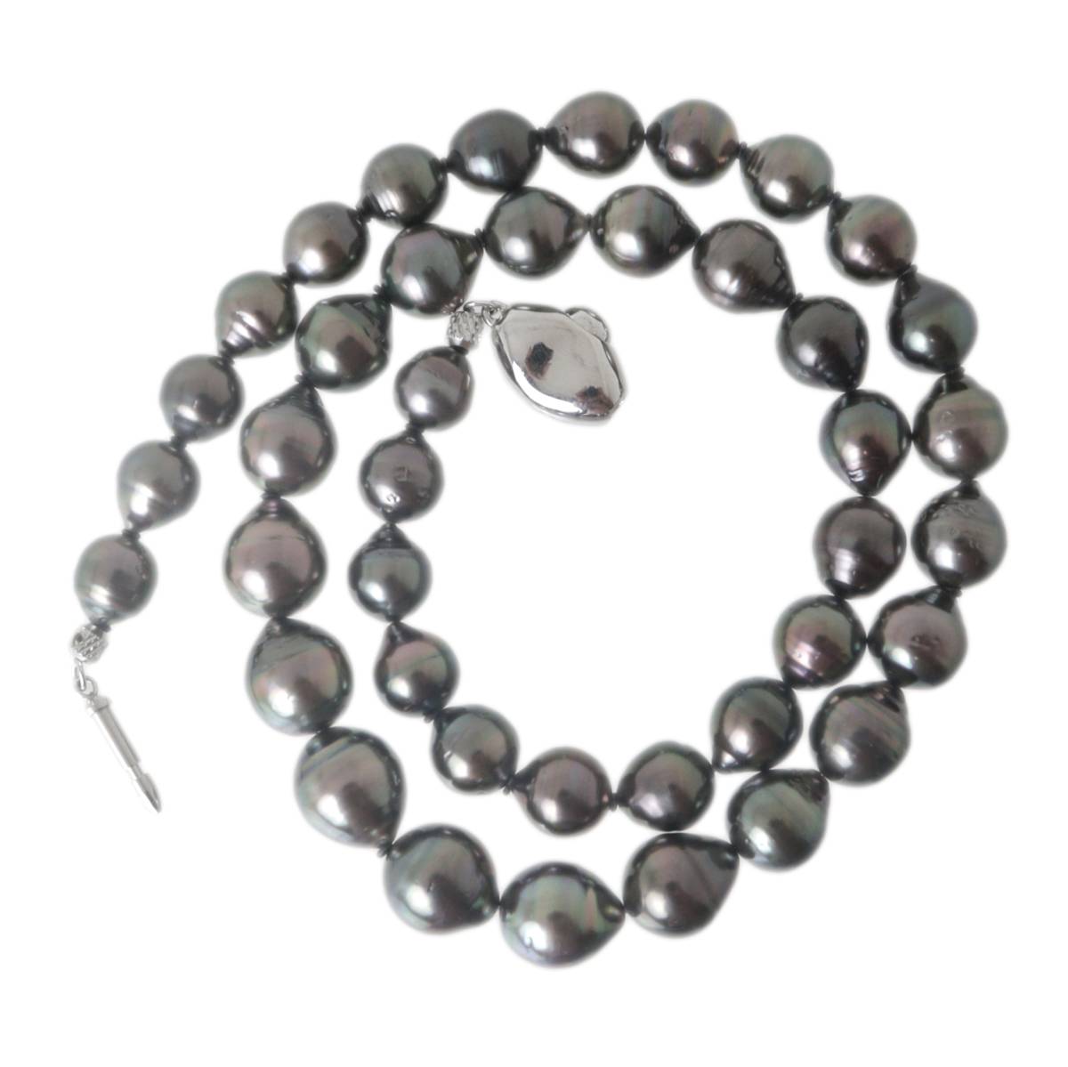 【中古】 黒蝶真珠 タヒチ パールネックレス イヤリング セット 黒蝶真珠×金具:SILVER(ネックレス)/K14WG(イヤリング) ブラック 首周り約45.5cm パール約7.8-10.5mm珠 重量約50.3g NT Bランク