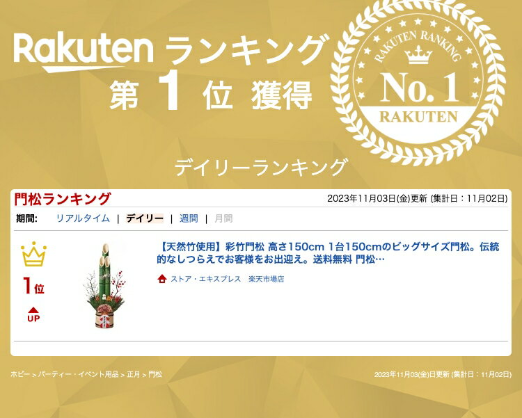 【5%OFFクーポン有り!ブラックフライデー期間中♪】【天然竹使用】彩竹門松 高さ150cm 1台送料無料 門松 正月 飾り 玄関 竹 造花 正月飾り 販売