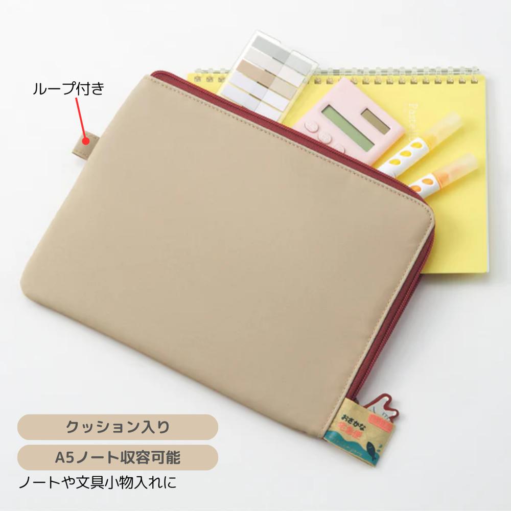 リヒトラブ Lihit Lab A2222 にゃんシーン フラットポーチ インディゴブルー ビスケットベージュ チャコールブラック ピスタチオグリーン | ポーチ 小物入れ 旅行 かわいい 通帳ケース 母子手帳ケース マルチケース A5 コンパクト フラット マスクケース 薄型 持ち運び