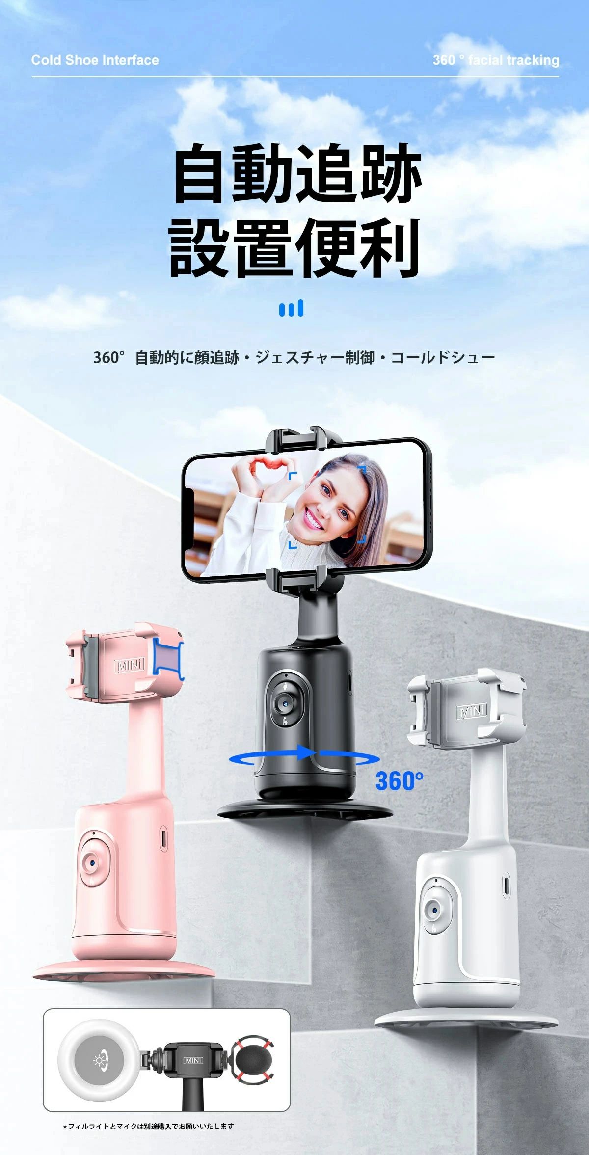 2025年新世代 AI 360°顔認識 自動追尾 スマホ ジンバル 自撮り雲台 スマホ 三脚 リモコン付き フィルインライトとマイク併用可能 カメラ追随 360°自動回転 自動追跡スマホスタンド 顔追跡ホルダー 料理/メイク/YouTube/ダンス/旅行/Vlog/自動追尾入門者に最適