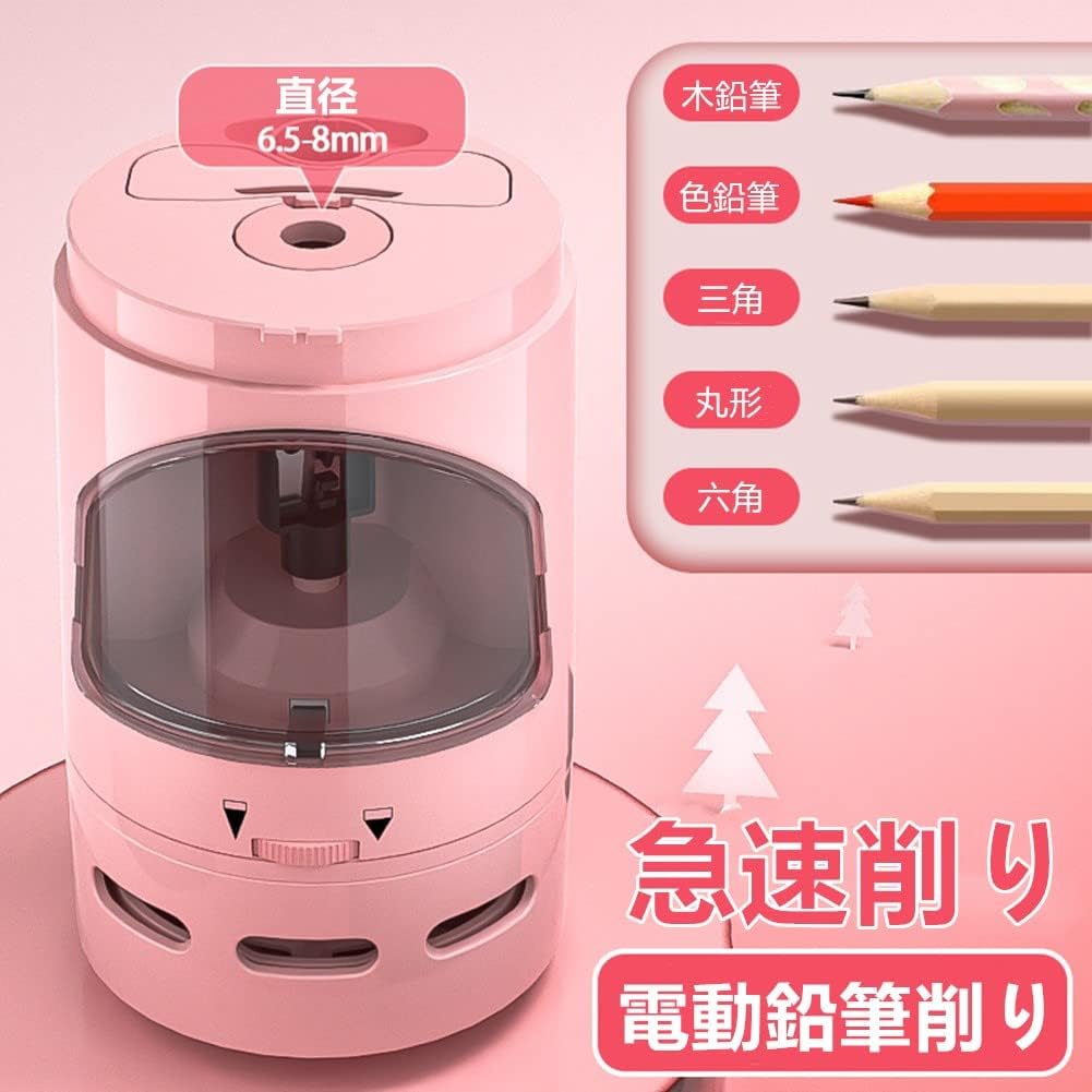 鉛筆削り 電動えんぴつ削り 卓上クリーナー付き 電動シャープナー 電池式 急速削り 自動停止 削りすぎ防止 6-8mm 鉛筆けずり ダ削り防止 芯先調整機能付き 子供 入園入学 学校 事務用