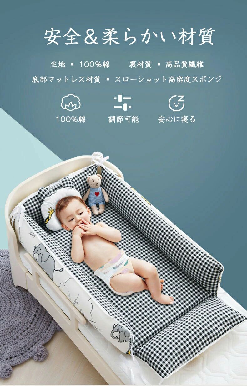 4点セット ベッドインベッド 寝返り防止 赤ちゃん 安全 洗える ベビー布団 ベビーベッド クーハン 持ち運び クーファン