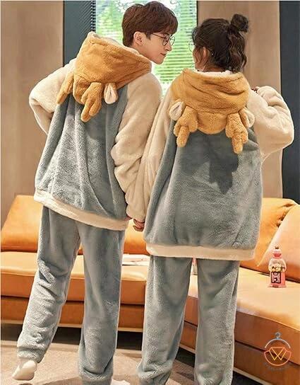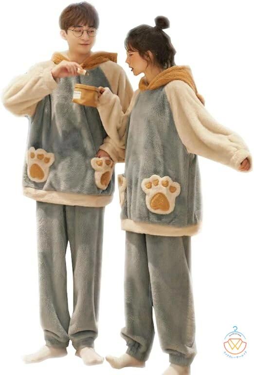 可愛い 結婚祝い ペアルック 寝巻き クリスマス 送料無料 フード付き レディース 長袖 厚手 暖かい お揃い