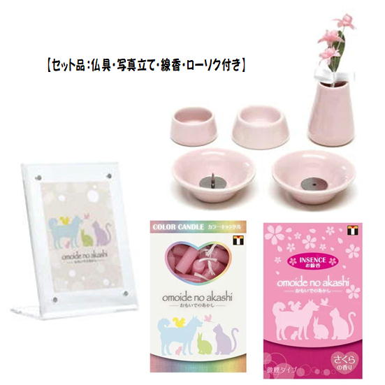 ペット仏壇・ペット骨壺収納 手元供養BOX 小 ホワイト/ピンクセット H20.5cm 【セット品:仏具・写真立て・線香・ローソク付き】 手元供養 愛犬 わんちゃん 猫 BOX 白 ★送料無料★